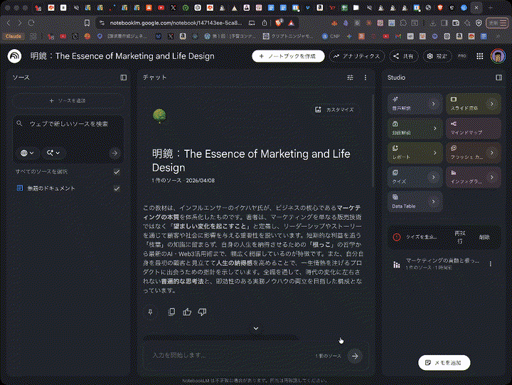 ObsidianやNotebookLMに「明鏡」を丸ごと読み込ませてOK。専用マーケコンサルとして活用。